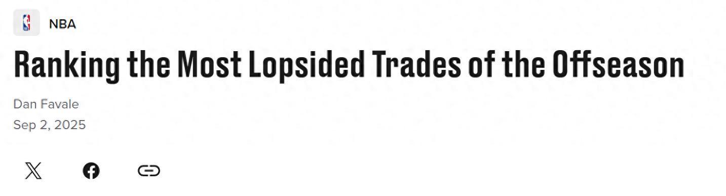 火箭队白魔1换2交易入选!在休赛期整体调整基本结束之际,美媒《bleacherreport》评选出休赛期至今最不公平交易TOP5名单,其中老鹰队1换2夺魁。